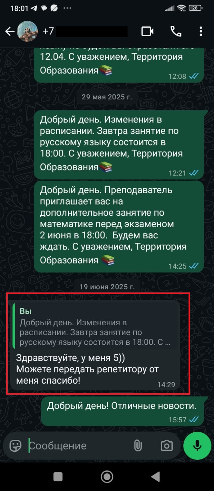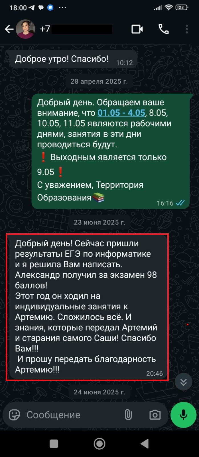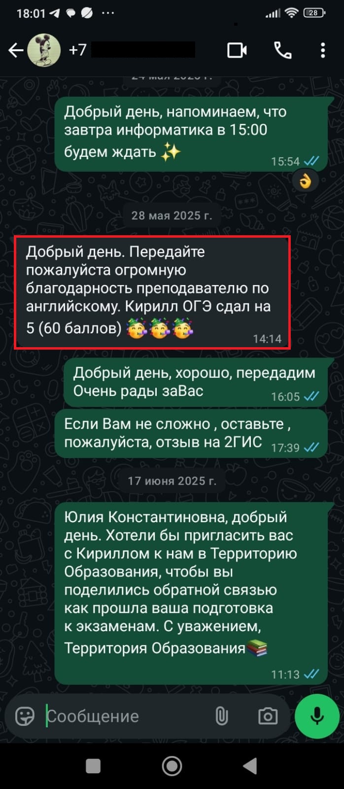 Обучение в "Территории образования" стало сильной опорой для меня как на экзамене, так и на первом курсе университета.